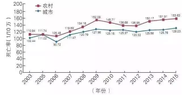 依據(jù)第六次人口普查數(shù)據(jù),2015年死于腦血管病的城鎮(zhèn)居民為85.36萬人,農(nóng)村居民103.49萬人?傮w上看農(nóng)村地區(qū)腦血管病死亡率高于城市地區(qū)。進一步分析表明,我國腦卒中死亡率下降的主要因素可能有以下幾種:1、中國整體醫(yī)療保障的改善;2、臨床診斷和救治技術(shù)的進步;3、城市居民腦卒中發(fā)病率下降;4、卒中防治知識水平的普遍提高。經(jīng)濟狀況與健康知識會影響患病率與死亡率:卒中患病率和不同教育水平呈負相關(guān)關(guān)系,即小學(xué)和以下文化卒中患病率最高,大專及以上最低。