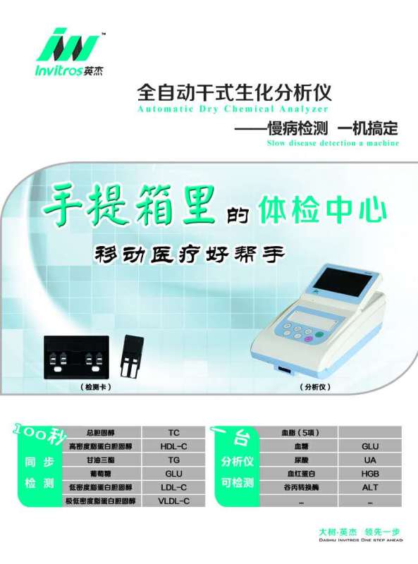 血脂血糖日常防控是根本,而大樹英杰全自動干式生化分析儀又是血脂血糖日常防控的必須工具,有大樹英杰全自動干式生化分析儀進入社區(qū)才可能為高發(fā)的心腦血管疾病筑起一道防護欄!讓身邊的朋友遠離心腦血管疾病!